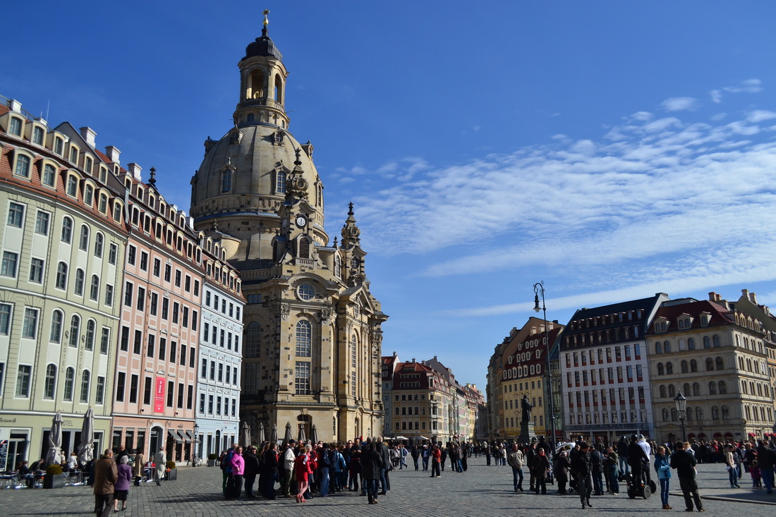 Расположенная в Дрездене, Фрауэнкирхе (церковь Богоматери), является лютеранской церковью, которая была полностью разрушена во время Второй мировой войны. Церковь восстановлена при помощи оставшихся оригинальных планов строения, датируемых 1720-м годом и вновь открыта в 2005 году. На куполе церкви возвышается настоящий золотой крест. Высота здания 95 метров. Главной достопримечательностью церкви является алтарь Иоганна Христиана Фейге, который сохранился практически в первозданном виде. Церковь можно осмотреть целиком, от купола до оригинальных надгробий, прогуливаясь по балюстрадам и подвалам строения.