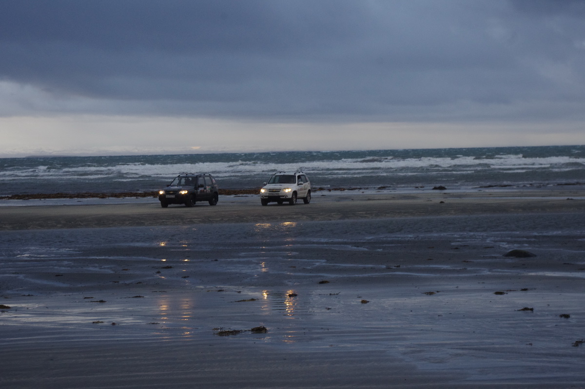 И вот, мы приехали на самую северную точку Европейской части России, на берег Баренцева моря. Свет фар отпугнул лису с места установки лагеря, и мы остановились.